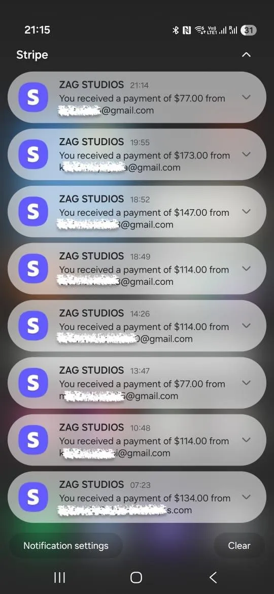 > proof of your success - in your Stripe notifications